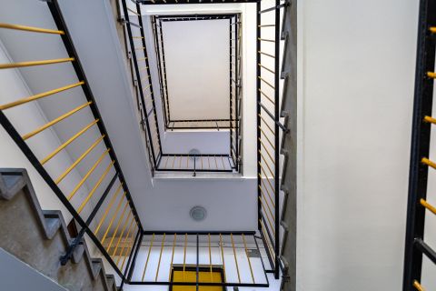 A kukák külön helyiségben kaptak helyet, így a közös területek mindig rendezettek. Lift nincs a házban, ugyanakkor a 3. emeletre érve valóban megéri a lépcsőzés a magasabb elhelyezkedésnek köszönhetően a lakásból pazar, szellős városi kilátás tárul eléd.
