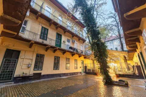 - két szoba az utcára néz, a harmadik pedig a belső udvarra