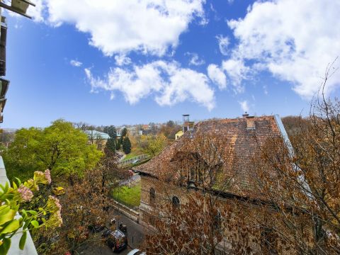 ✅ A nappali déli tájolású, az utcára néz, részleges panorámával a Svábhegy irányába, így a lakás egész nap világos és napfényes.