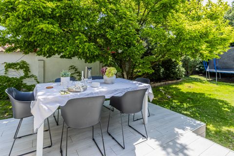 Az ingatlan egyik KÜLÖNLEGESSÉGE a csodálatos NAPPALI az ELEGÁNS SYKORA KONYHÁVAL, amit a hatalmas üvegtáblás teraszajtókkal egybe lehet nyitni a GYÖNYÖRŰ TERASSZAL és a GONDOZOTT KERTTEL.