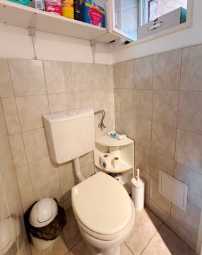 A 253 m2-es telek kis energiával rendben tartható. Egy autóval be lehet parkolni az udvarba.
