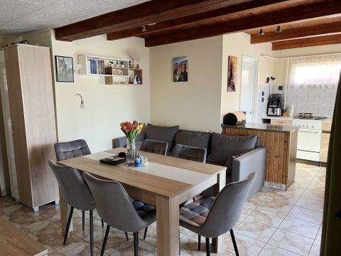 A ház fűtése központban elhelyezett cserépkályhával történik, de aki gyors meleget szeretne, annak gázkonvektorok is a rendelkezésre állnak. A melegvízet villanybojler adja.