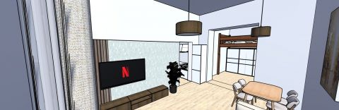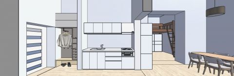 Thanks to its 4.1 m ceiling height, a standing gallery can also be created. Currently, a 7 sqm gallery further increases the space, where the ceiling height above is 180 cm.