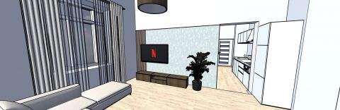 The apartment is heated with a Hera type tiled stove, while the water heating is solved with a gas boiler.