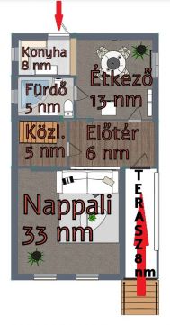 - Földszint: 70 m²+ 8 m² terasz – praktikus elrendezés, otthonos terek.