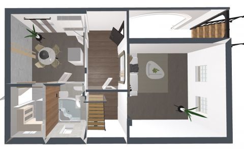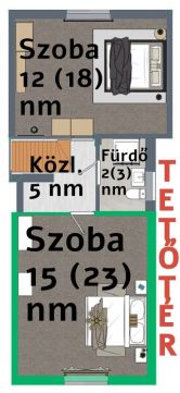 - Tetőtér: 34 (49) m²– a fürdőszoba kialakítása előkészítve, a vízállás kiépítve. A szobákban tölgyfa parketta.