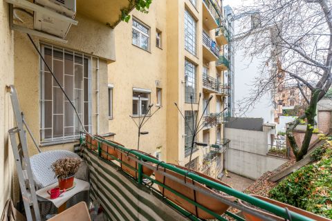 Az ingatlan egy 1935-ben épült, Bauhaus stílusú, liftes társasház 2. emeletén található. A 90 m²-es, teljes körűen felújított lakás nyugati tájolásának köszönhetően rendkívül világos és napfényes, erkélyéről lenyűgöző kilátás nyílik a Budai Várra. A környék kiváló közlekedési infrastruktúrával rendelkezik: a 19-es és 41-es villamos megállója, valamint a 16-os, 216-os és 105-ös buszok megállója néhány perces sétával elérhető a Clark Ádám térről.
