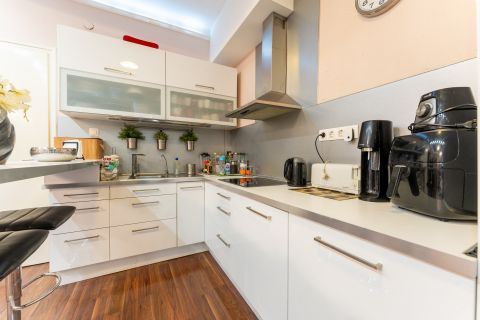 A műszaki tartalom kiemelkedő: teljes körű felújítás történt, beleértve a víz- és villanyvezetékek cseréjét, új radiátorokat, nyílászárókat, valamint biztonsági rendszert. A nappali klimatizált, a konyha gépesített, modern és magas fényű bútorokkal felszerelt. A lakás energiahatékony LED világítással, redőnyökkel, szúnyoghálókkal, riasztóval és biztonsági bejárati ajtóval rendelkezik. Igény esetén a teljes bútorzat is megvásárolható.