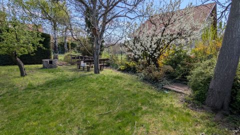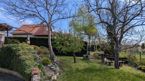 -Telek mérete: 760 m² – gondozott, parkosított kerttel, gyümölcsfákkal, kerti sütögetővel