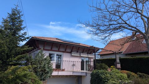 -Tető: Bramac betoncserép, sátortetős kialakítás, napkollektorral a déli oldalon