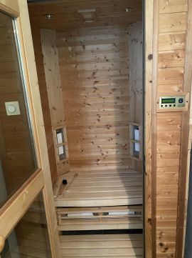 In addition to the wonderful kitchen furniture, the stylish bathroom also features a sauna.