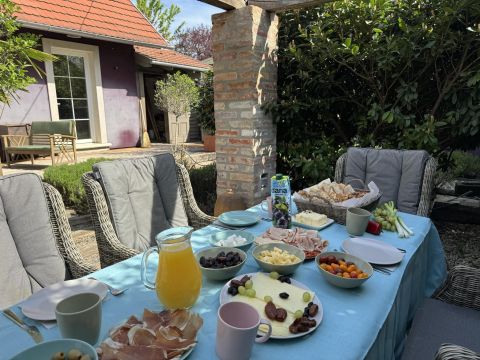 A Provence-i hangulatú udvarban lévő, két lakásos ház, kiválóan alkalmas lakóháznak, nyaralónak illetve vendégháznak.