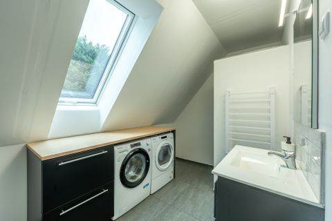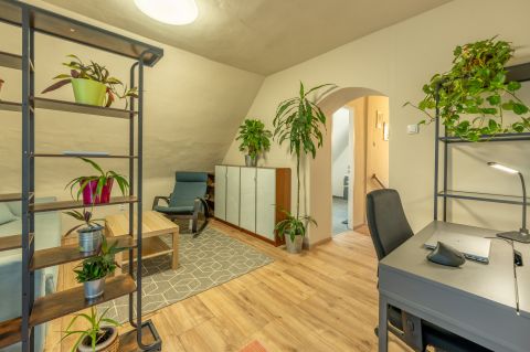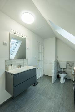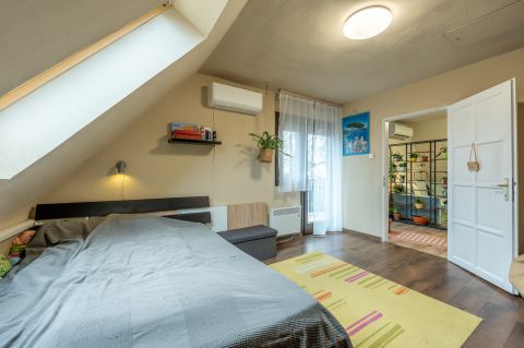 A tetőtér is közel 60m2, ahol 3 szoba és egy fürdőszoba került kialakításra. 2 szobából léphetünk ki az erkélyre.