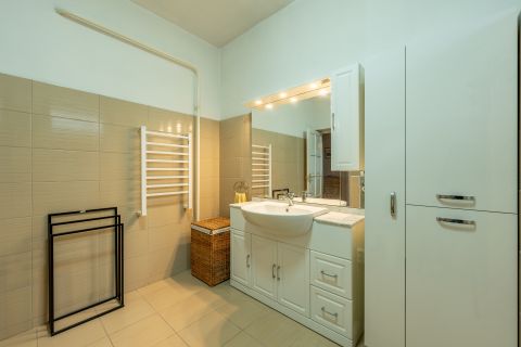 A fűtés elektromos panelekkel és fűtésre optimalizált klímákkal megoldott. Melegvizet gázzal működő, átfolyós vízmelegítő biztosítja.