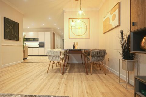 - Prémium vízálló laminált padló a lakás teljes területén