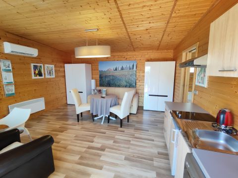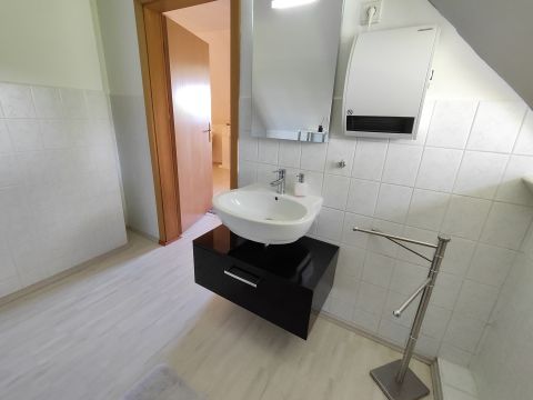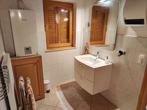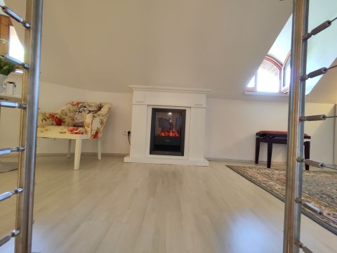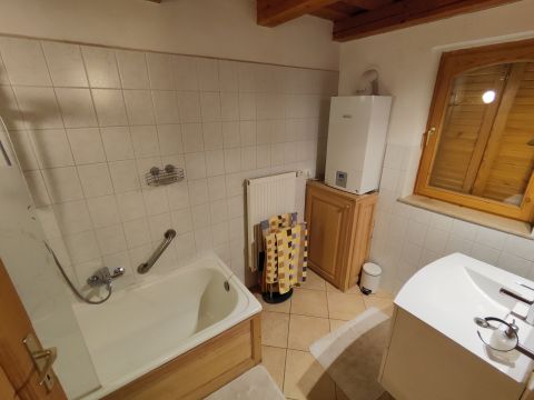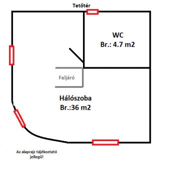A ház két részből áll, az első fele 90-es évek végén téglábol épült, melyben nappali-konyha, fürdőszoba, WC, a tetőtérben egy nagy szoba, WC található. Itt zuhanyzó is kialakítható.