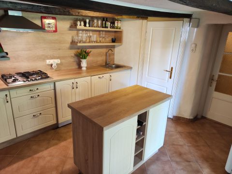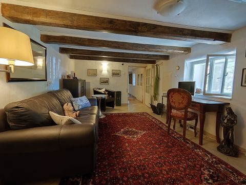 A hátsó ca. 150 éves házrész vastag kő falazatú, a régi idők atmoszféráját hordozza magában. Belmagassága kb. 194cm ahol szoba, étkező, konyha, fürdőszoba, közlekedő, WC, pince kapott helyet, egy 10 m2-es fedett terasz található előtte.