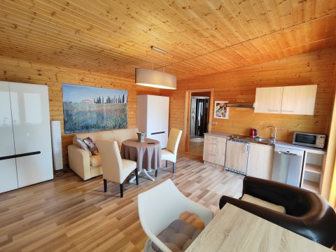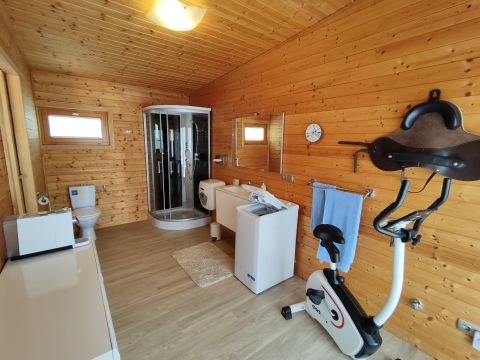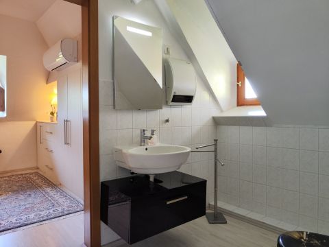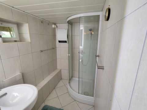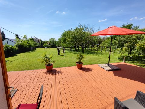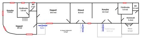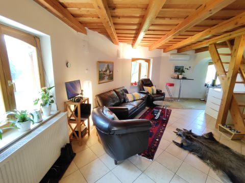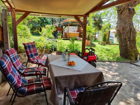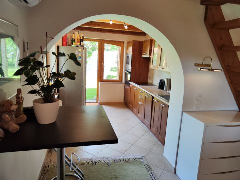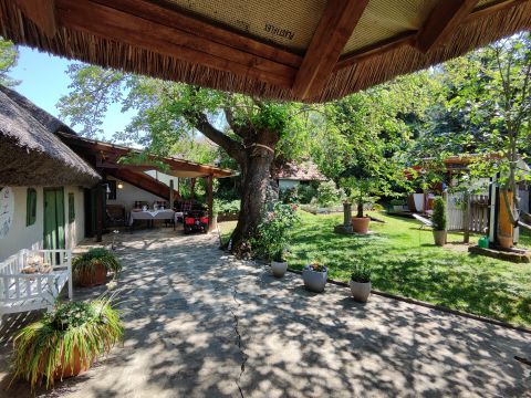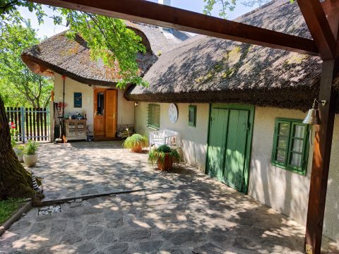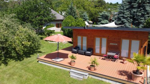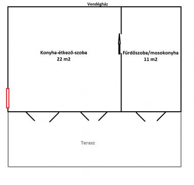 Továbbá az udvarban van egy téliesített nagy teraszos vendégház, melyben szoba-konyha, zuhanyzó/ WC került kialakításra.