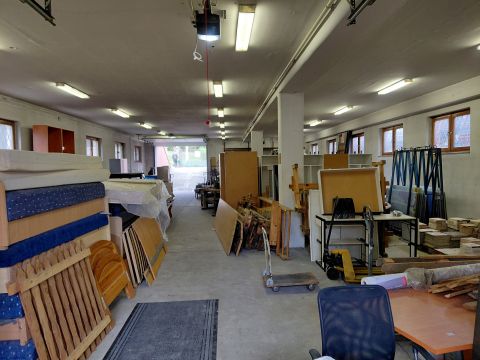 Az egész alsó szint hatalmas egybefüggő tér, kétoldali kapubejárattal, óriási teherbírással.