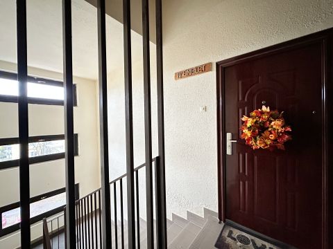 A lakás egy négyemeletes, folyamatosan karbantartott társasház legfelső szintjén található, mindkét irányba zöldre néző, kellemes kilátással és kiváló benapozottsággal.