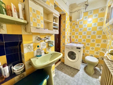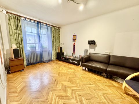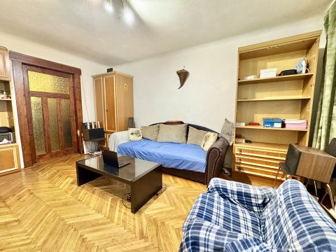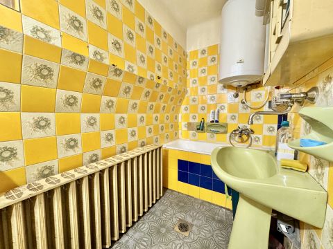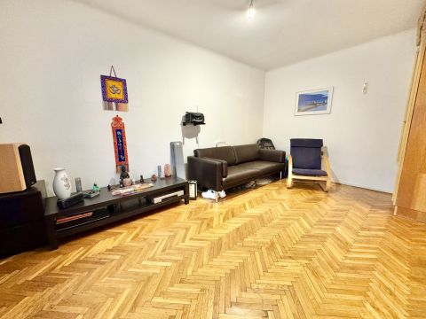 A 64 m²-es lakás teljes felújítást igényel, ugyanakkor kivételesen jó alaprendszerrel és nagy, jól szervezhető terekkel rendelkezik.