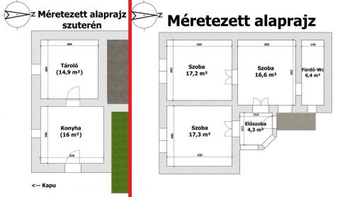A ház felső szintje , 62 m2 és az alsó szuterén rész 30,9 m2- t foglal magába, összesen 93 m2.