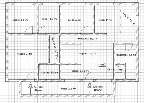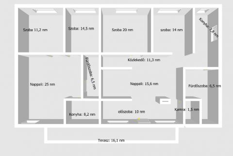 Az ingatlanban összesen 6 szoba, 2 fürdőszoba és 2 konyha található, ami az alábbiak szerint tevődik össze: