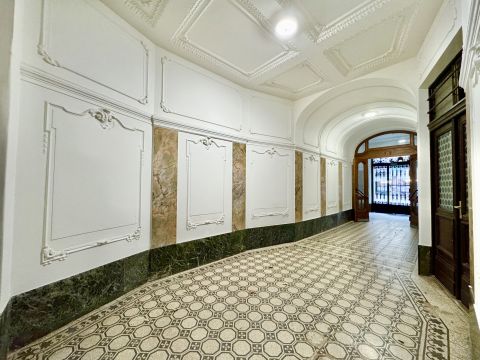 A patinás saroképület történelmi múlttal is rendelkezik, a lakás maga pedig így két utca felől, a Veres Pálné valamint az Irányi utca felől is megközelíthető.