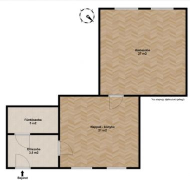 - Nappali-konyha, hálószoba, előszoba, fürdőszoba-wc