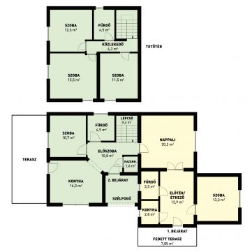 ÖSSZENYITVA egy tágas, 6 szobás otthonként, LEVÁLASZTVA pedig két teljesen önálló lakrészként használható!