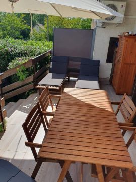Badacsonylábdihegy belterületi részén, forgalomtól mentes kis zsákutcában található ez a műszakilag teljeskörűen felújított iker-fél nyaraló.