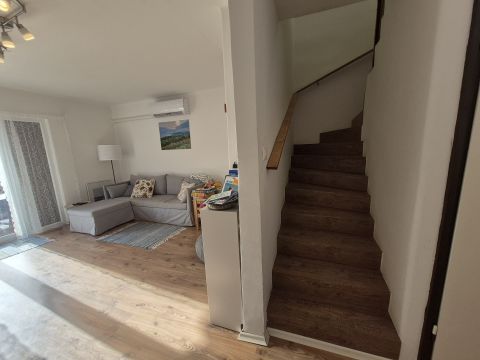 Az alsó lakótér 30 nm, míg az emeleti 28, amelyeket a földszinti és emeleti teraszok is bővítenek. Az emeleti részt kényelmes belső lépcsővel lehet megközelíteni.