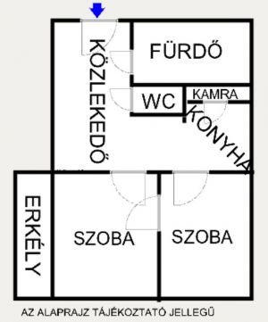 Eladó egy 54 m²-es, 2 külön szobás, kamrás és erkélyes lakás a XVII. kerületben, Rákoskeresztúron, egy négyemeletes csúsztatott zsalus ház első emeletén.