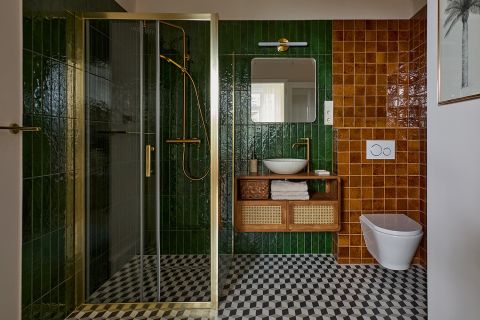 A második hálószoba rugalmasan alakítható: gyerekszobaként, vendégszobaként vagy dolgozóként is jól működik. A tér mellett található különálló zuhanyzó és külön WC ritka előny, különösen akkor, ha vendégek érkeznek, vagy ha egy tinédzsernek szeretnék önállóbb, privát életteret kialakítani. A választott angol tapéták és olasz burkolatok itt is elegáns, hangsúlyos karaktert adnak a szobának.