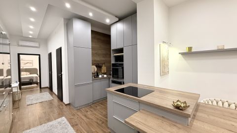 Teljes körűen felújított, magas minőségű anyagokkal és bútorokkal felszerelt, csendes és világos, 2 szobás lakás.