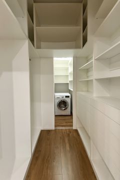rengeteg polc, akasztórúd, felső szekrények és egy külön mosókonyharész került kialakításra.