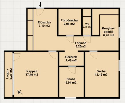 Mindegyik szoba külön nyílik. A középen lévő félszobánál egy kis gardróbot lehet kialakítani, illetve az előszobában beépített szekrények nyújtanak tárolási lehetőséget.