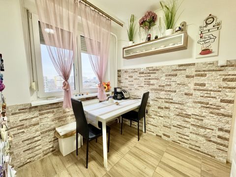 ELADÓ XX. kerület Városközpontban, a Bíró Mihály utcában, a kilencedik emeleten, nagyon jó elosztású, 62 m2-es, 2+1 félszobás, beépített lodzsás,