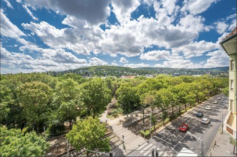 Erkély kellemes kilátással a Budai-hegyek irányába