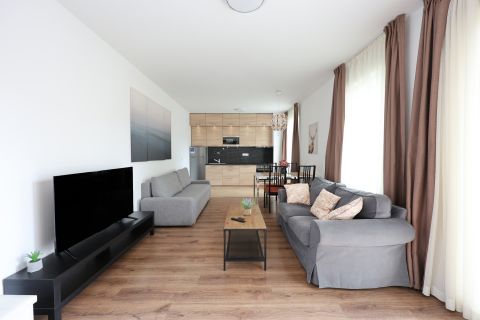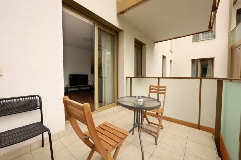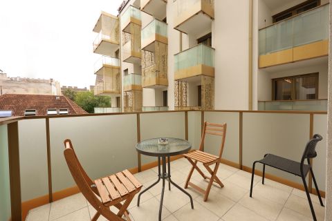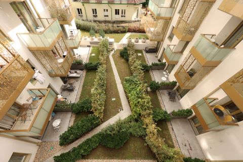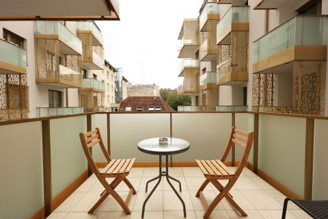 A 50 nm-es, két szobás, kiváló elrendezésű, különlegesen világos és napfényes otthonhoz 6 nm-es, kényelmes teraszos rész is tartozik. A lakás a ház csodálatos, kertész által gondozott, egyetlenülállóan szép belső parkjára néz – csendes, nyugodt, mégis a város pezsgésében.