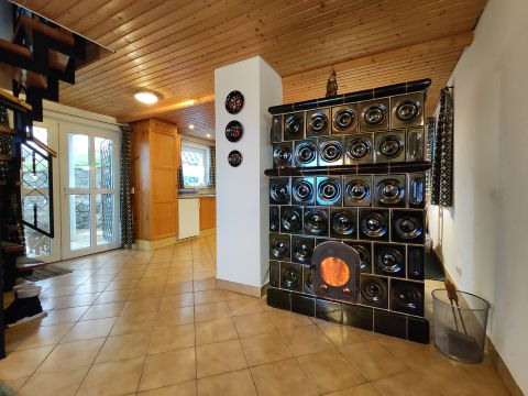 -Alsó szinten alapfűtés cserépkályha, továbbá elektromos kazánról 3 zónás padlófűtés, felső szinten radiátorok.