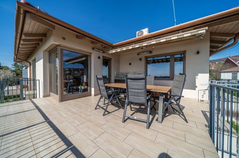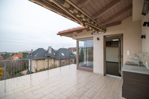 A kilátás főként a 24 nm-es panorámateraszról élvezhető, ahol egy külső konyhapult is helyett kapott, lehetőséget adva a kinti sütéshez, főzéshez, a tavasztól-őszig terjedő időszakban.