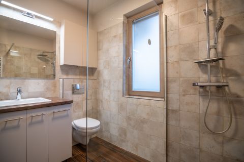 Az ingatlan egy zuhanyzós wc-s fürdővel és egy különálló, kézmosós toalettel is rendelkezik.