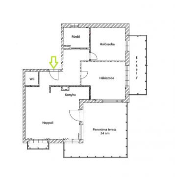 A lakás teljes alapterülete: nettó 75 nm + 33 nm erkély / terasz.