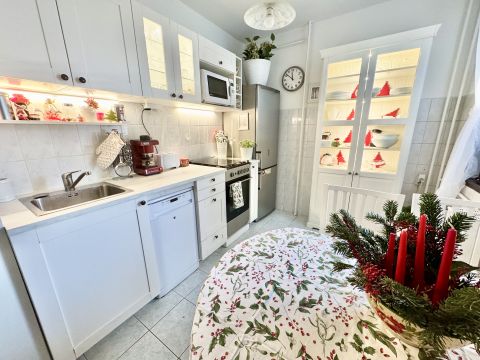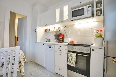 - megújult konyha: oda tervezett konyhabútorokkal, kombinált tűzhely, mosogatógép, hűtőszekrény, mikróhullámú sütő,