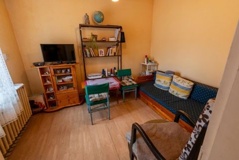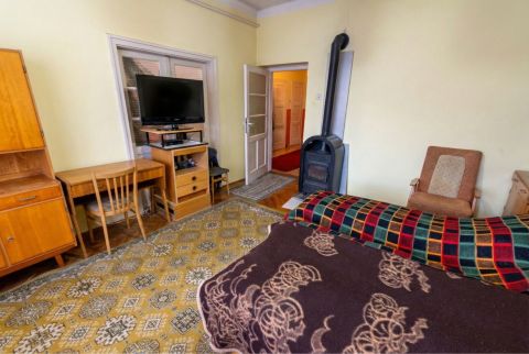 A tégla építésű, gázcirkó fűtéses, 4 szobás főépületben egy idős személy lakik, aki az ingatlan 50%-án haszonélvezeti joggal rendelkezik.