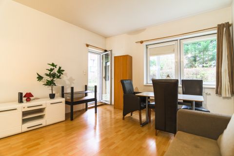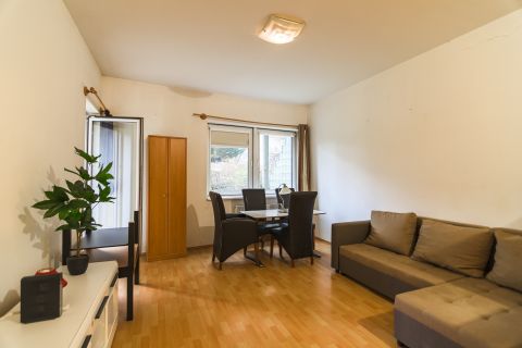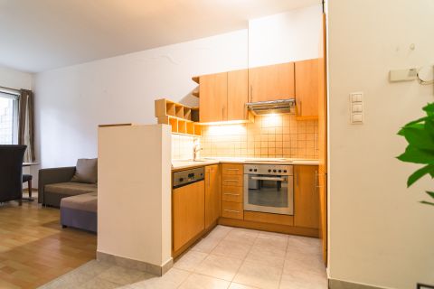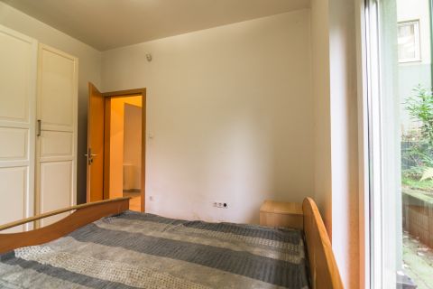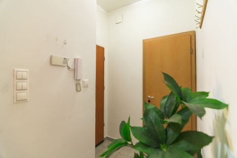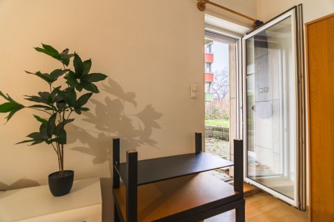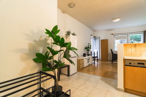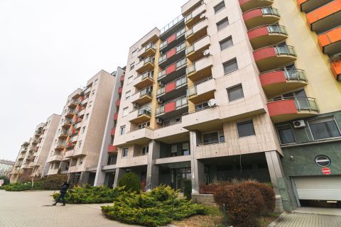 A lakás a belső, zöld udvarra néz, csendes.