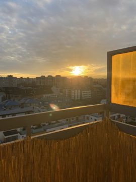 A nappali déli fekvésű, így egész nap napfényes, az erkélyről pedig szabad panoráma tárul elénk – nincs közvetlen szomszéd panel, valóban élvezhető a kilátás és az esti naplementék.