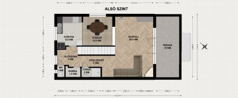 •16 nm. terasz, nappali és kertkapcsolattal