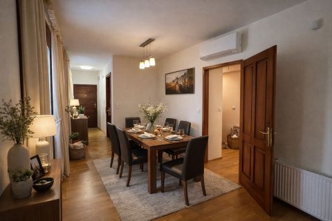A 94 m²-es, földszintes lakás minden részlete azt szolgálja, hogy a mindennapok kényelmesek és harmonikusak legyenek.